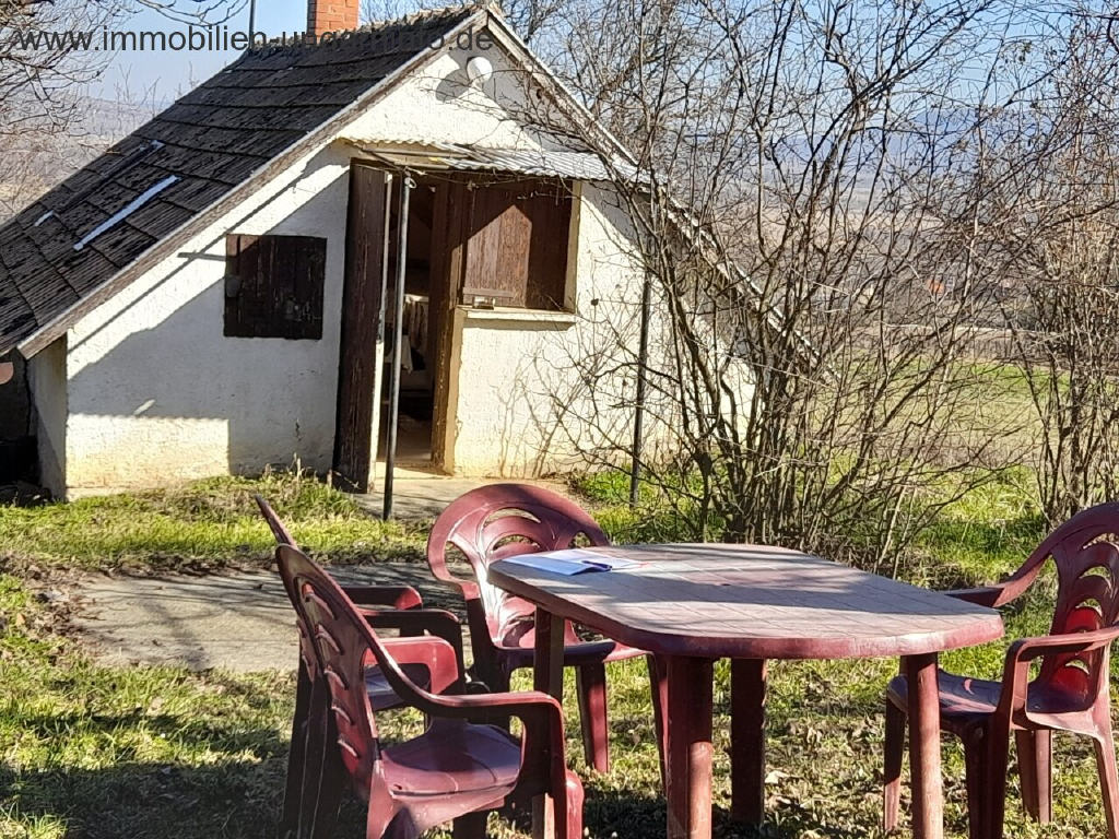 In Balatonederics Öreghegy, ein 6656 m² großes Privatgrundstück mit Panoramablick, zwei 32 m² große Wochenendhäuser zu verkaufen. Das Grundstück bietet einen schönen Blick auf das Tapolca-Becken, den Szent György-Berg, Badacsony, Szigliget und den Plattensee.