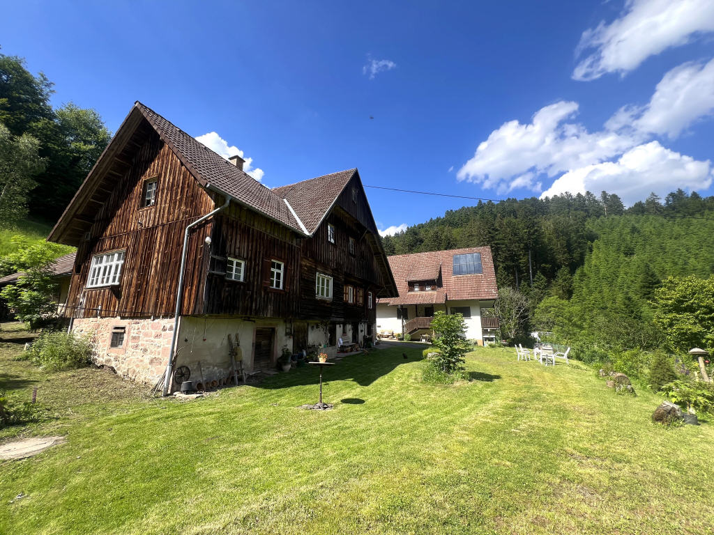 Attraktives Hofgut in unwiederbringlicher Traumlage mit privater Zufahrt, 2 großen Wohn- und Ökonomiegebäuden sowie großzügigem Grundstückareal in bevorzugter, absoluter Alleinlage auf einem sonnigen Plateau gelegen. Die Gesamtwohnfläche des ca. 1981 in hochwertiger Massivbauweise errichteten Landhauses mit 2 Wohnungen beträgt ca. 210 m². Das Dachgeschoss könnte zu weiterem attraktivem Wohnraum ausgebaut werden. Weiter befindet sich auf der Hofstelle ein denkmalgeschützter Original-Schwarzwaldhof, der renovierungsbedürftig ist. (Ursprungsjahr ca. 1600, neu aufgebaut ca. 1800). Die aktuell vorhandene Wohnfläche beträgt ca. 150 m². Das Gebäude verfügt über eine Ausbaureserve von ca. 80 m² (Scheune/Tenne) sowie eine Nutzfläche von ca. 120 m² (Stallungen, Abstellräume). Auf der Hofstelle befindet sich ein „Brennhäusle“ mit komplett eingerichteter Brennerei für ca. 300 l Weingeist und einem großzügigen, abgetrennten Werkstattraum. Das Dachgeschoss des Gebäudes kann zu weiterem attraktivem Wohnraum ausgebaut werden (Grundfläche ca. 77 m²). Die Frischwasserversorgung erfolgt über eine eigene, ergiebige Quelle mit einem Frischwasser-Reservoir mit ca. 5 m². Der Schwarzwaldhof ist besonders und einzigartig mit vielfältigen Nutzungsmöglichkeiten, z.B. privates Wohnen mit Tieren, Hofladen, Straußenwirtschaft, Ferienwohnungen, etc. Hier ist ein autarkes, gesundes Leben inmitten der Natur, umgeben von Wiesen, Wäldern und Bächen möglich, ohne von der nächsten Stadt allzu weit entfernt zu sein. Es ist somit das ideale Refugium für Naturliebhaber, Hobby-Landwirte, etc.