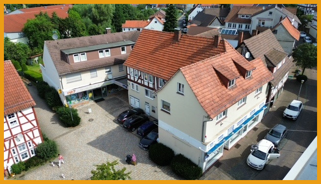 Dieses in Teilen ursprünglich um 1900 erbaute und in 1972 massiv erweiterte Wohn- und Gewerbeobjekt bietet Ihnen heute eine Wohn- und Gewerbefläche von rund 756 m² zzgl. Keller und Nebenräume. Der Ladenbereich im Erdgeschoss verfügt über rund 190 m² Fläche. Zusätzlich stehen Abstellräume und ein WC zur Verfügung sowie ein direkter Zugang in den Garten. Über dem Laden auf ca. 140 m² ist eine großzügige ehemalige Betreiber-Wohnung mit drei Schlafzimmern, einem Wohnzimmer, einer Küche mit Speisekammer, einem Bad mit Wanne und Dusche, einem separaten Gäste-WC und großem Balkon gelegen. Im darüberliegenden Dachgeschoss ist eine weitere Einheit mit rund 100 m² vorhanden, die sich in ein Wohnzimmer, zwei Schlafzimmer, eine Küche, ein Gäste-WC und ein Badezimmer mit Dusche aufteilt. Der ältere Gebäudeteil hat im Erdgeschoss eine vermietete Ladenfläche mit etwa 80 m² sowie ebenso 2 Wohneinheiten im Ober- und Dachgeschoss mit rd. 70 m² und 140 m² Fläche. Alle Wohneinheiten sind an solvente Mieter vermietet, könnten aber auch in Teilen eigengenutzt werden. Für PKWs stehen eine Garage, ein Carport und 3 Stellplätze im Hof zur Verfügung. Die steigerbare Jahresnettomiete mit Staffelmietvertrag im Laden beträgt aktuell rd. 39.000,- €.