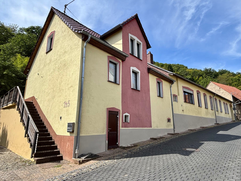 Die Hauptstraße verläuft von Südost nach Nordwest mit mittlerer Steigung, die Zuwegung zum Grundstück liegt