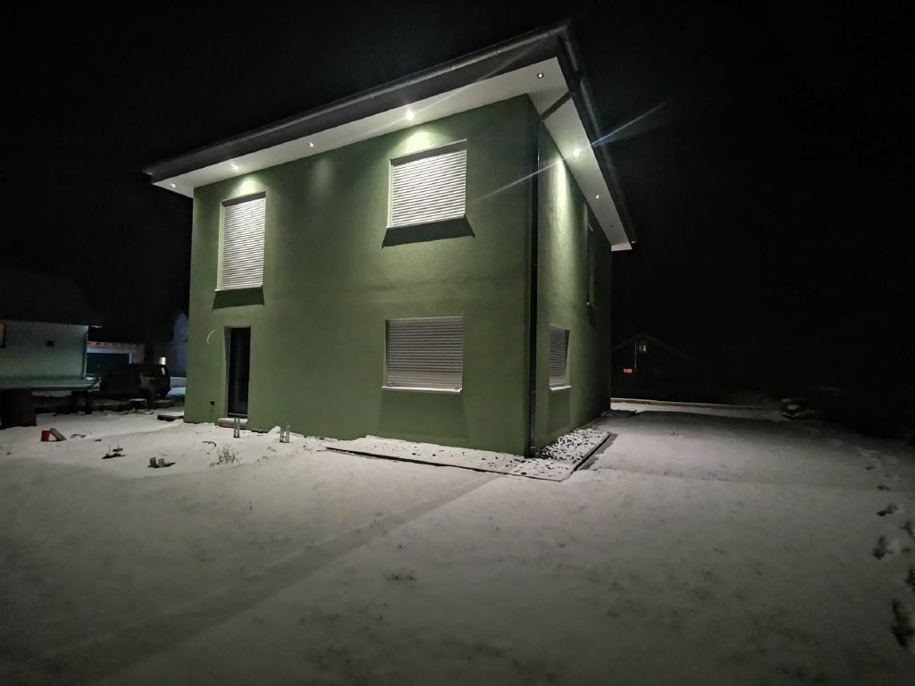 Auch in puncto Ausstattung erfüllt die Immobilie höchste Ansprüche: Alle Wohnräume verfügen über Fußbodenheizung. Als Bodenbelag wurden Fließen gewählt. Ein integriertes Lüftungssystem sorgt für Frischluftzufuhr. Für die Installation einer Photovoltaikanlage sind bereits Leerrohre vorbereitet. Komfortable Details wie elektrische Rollläden, eine Haustür mit Fingerabdrucksensor sowie eine stimmungsvolle Beleuchtung im Wohn- und Essbereich runden das Immobilienangebot ab. Bei den verbauten Fenstern handelt es sich um Kunststofffenster mit 3-fach Verglasung im Farbton anthrazitgrau. Das Walmdach ist mit Betondachsteinen (Granit) gedeckt.