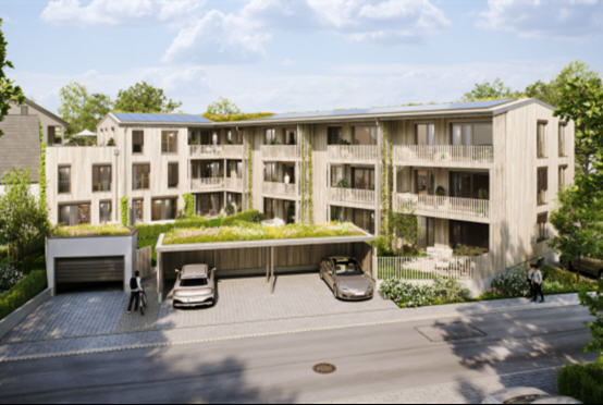 Das besonders nachhaltige und klimafreundliche Wohngebäude wurde in Holzständerbauweise errichtet.