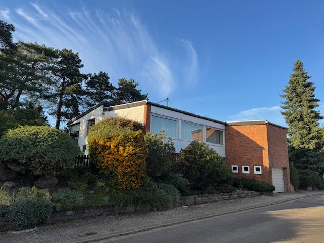 Das massiv gebaute Wohnhaus aus den 1960er Jahren wurde immer wieder renoviert und umgestaltet. Man findet einen gepflegten Allgemeinzustand vor, allerdings besteht aktuell weiterer Renovierungs- und Modernisierungsbedarf. Das Anwesen bietet Platz für eine Familie mit 2 Kindern und könnte wohl auch noch aufgestockt werden, falls man sein Büro im Erdgeschoss einrichten möchte. Die Bäder und die Heizung wurden bereits erneuert. Die Räume sind insgesamt, für diese Zeit, sehr großzügig angelegt und durch die versetzten Ebenen bietet sich ein interessanter, nicht alltäglicher Grundriss. Auf dem Grundstück befindet sich noch ein zweites, massiv gebautes Gebäude mit Schwimmbad, Sauna und großem „“Herrenzimmer“, sowie ein offener Kamin. Im Haus ist bereits ein Treppenlift verbaut, so dass man die Etagen auch noch erreicht, wenn das Treppensteigen schwerfällt. Der Großzügige Garten ist pflegeleicht angelegt und für Gartenliebhaber eine wahre Freude.
