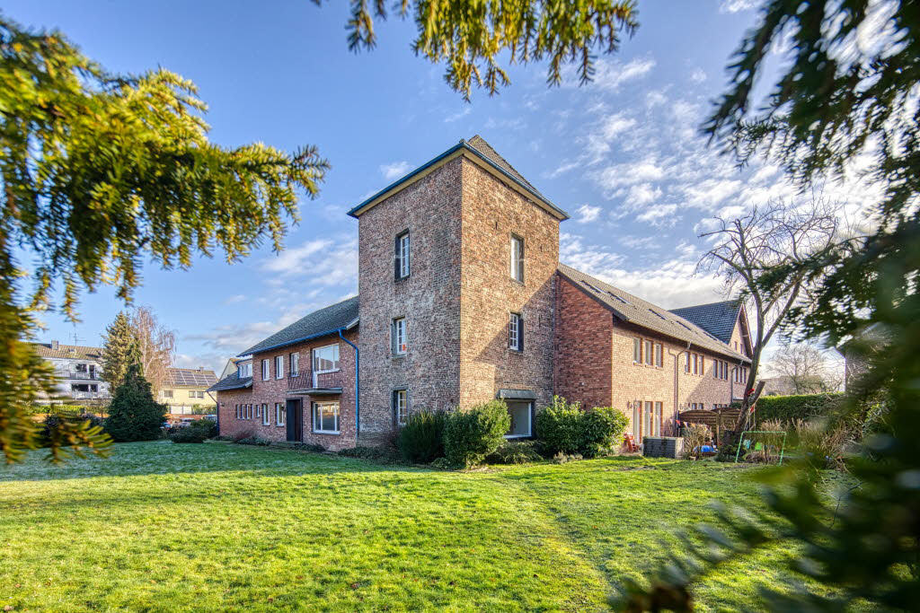 Denkmalgeschütztes Wohnanwesen im historischen Kern des westlichen Kölner Vororts Widdersdorf. Das Anwesen besteht aus 4 Gebäudeteilen aus 3 sehr unterschiedlichen Epochen. Der markante 3-geschossige Wohnturm aus Backstein ist das wahrscheinlich älteste Gebäude Widdersdorf und datiert von ca. 1650. 1958/59 erfolgte eine Erweiterung um ein großes 2 ½- geschossiges Wohnhaus mit einem 1 ½- geschossigen Anbau. Ca. 1998 wurde L-förmig ein autarkes modernes 2 ½-geschossiges Reihenhaus angebaut. Die Gebäude stehen auf einem eigenen 1.914 m² großen parkartigen Grundstück. Das Haupthaus mit Turm hat 10 Zimmer, Küche, Eingangshalle, 2 Bäder, 2 sep. WCs und eine Wohnfläche von 303 m². Das Reihenhaus hat 5 Zimmer, Küche, Diele, Bad und Gäste-WC mit ca. 136 m² Wohnfläche. Die gesamte Wohnfläche beträgt ca. 439 m². Die Nutzfläche (Keller, Speicher, Garage, Abstellraum) beträgt 159 m². Das Hauptgebäude hat noch bei den Bodenbelägen, Bädern, Fenstern und Leitungen die Originalausstattung von 1957/58, so dass entsprechender Modernisierungsbedarf besteht. Im Erdgeschoss des Anbaus befinden sich 2 Garagen und ein Abstellraum. Zur Straße liegt ein PKW-Stellplatz. Ggf. könnte ein weiterer Stellplatz realisiert werden. Bis auf das vermietete Reihenhaus ist das Anwesen bereits geräumt. Kaufpreis € 1.425.000 Energieausweis: Für das denkmalgeschützte Haupthaus ist kein Energieausweis vorgeschrieben. FORDERN SIE EIN AUSFÜHRLICHES EXPOSÉ MIT ALLEN DETAILS, PLÄNEN, BILDERN UND VOLLSTÄNDIGER ADRESSE AN!