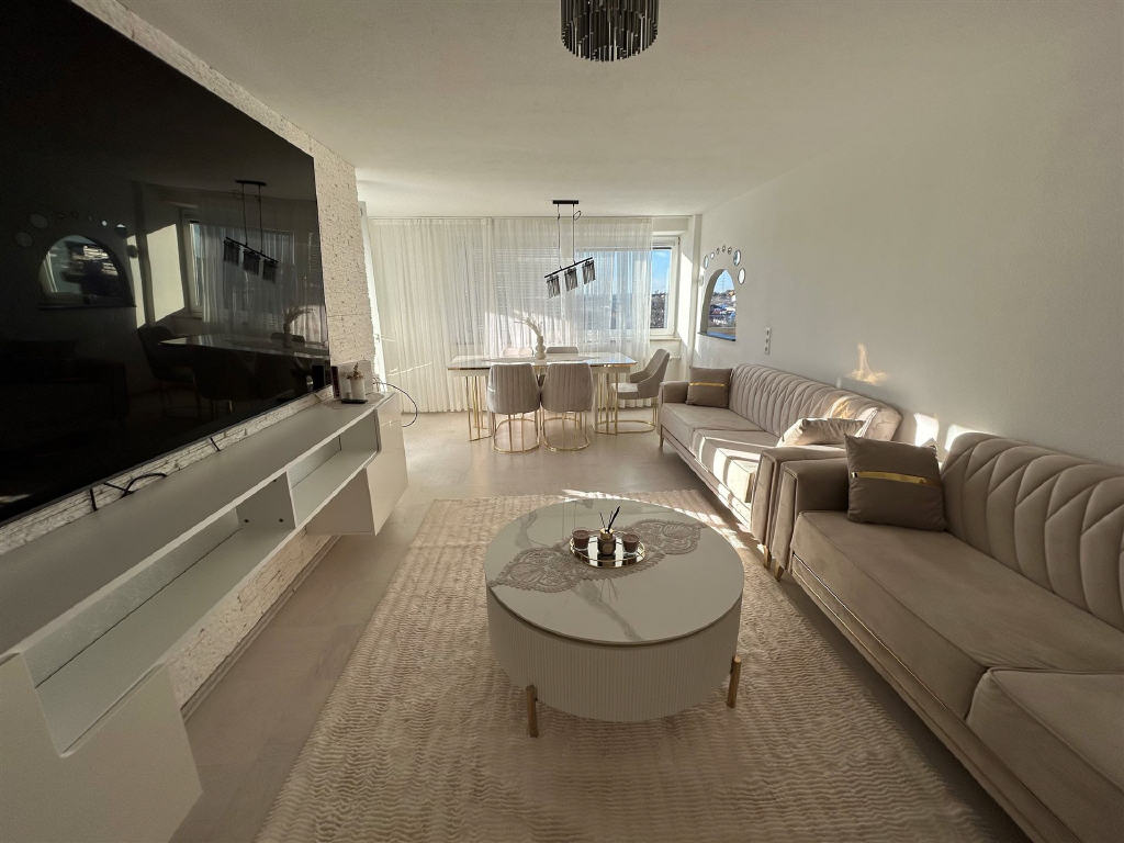 Der große Wohn- und Essbereich ist lichtdurchflutet und das Herzstück der Wohnung. Von hier aus hat man direkten Zugang zum Balkon mit einen schönen Blick. Hier kann man die Ruhe genießen und den Tag ausklingen lassen.