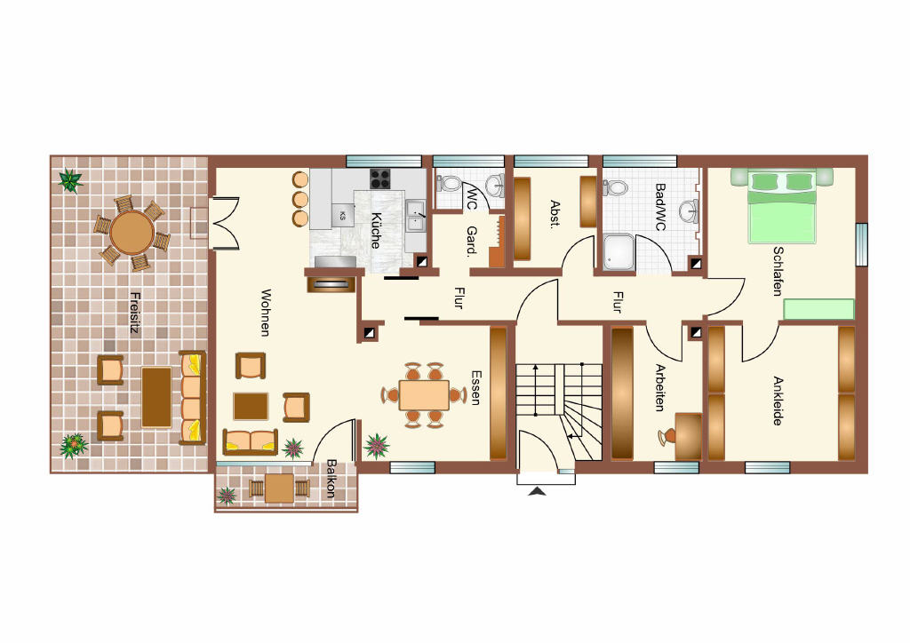 52 m² Wfl. und eine Drei-Zimmerwohnung mit ca.48 m ² Wfl. Beide Wohnungen können bei Bedarf wie im Erdgeschoss zu einer umgebaut werden.