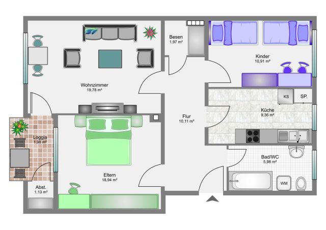 74 qm- mit Loggia , Stellplatz und Garage , 4. OG,