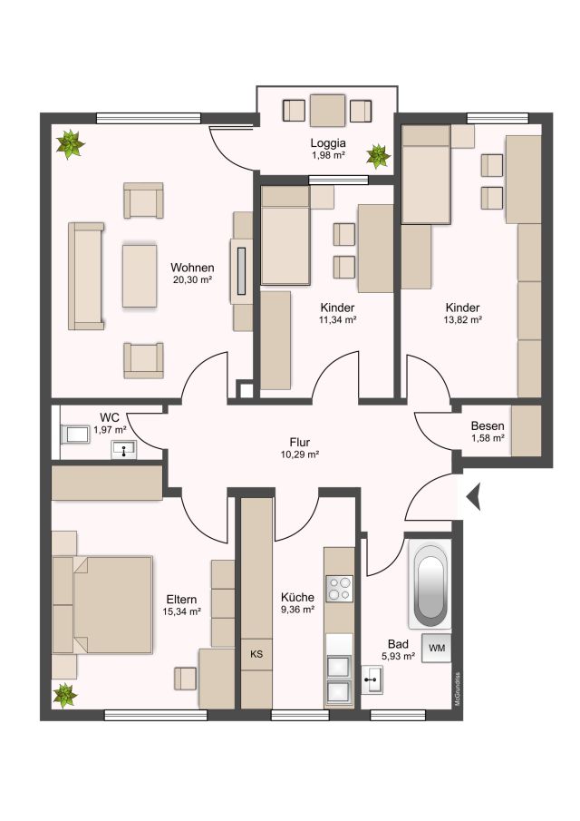 Tageslichtbad, ergänzt das wirtschaftliche Wohnkonzept.