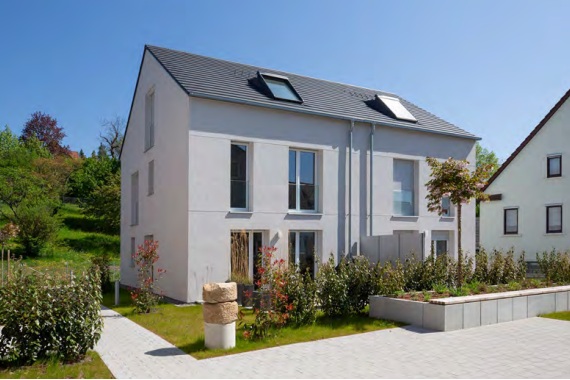 Die Wohnungen wurden nach den Effizienzhaus 55 Anforderungen errichtet. Die komfortable Wohnanlage besteht aus 2 getrennten Gebäuden mit jeweils 3 Stockwerke und insgesamt 16 Mietwohnungen sowie einer Gewerbeeinheit. Zudem befinden sich auf dem Grundstück noch 2 Doppelhaushälften. Der Aufzug mit schwellenfreiem Zugang reicht vom Untergeschoss bis ins Dachgeschoss. Neben den PKW-Stellplätzen in der Tiefgarage befinden sich im Untergeschoss die einzelnen Wohnungsabstellräume und die Allgemeinräume. Jeder Tiefgaragenabstellplatz einer Wohnung erhält eine abschließbare Steckdose. Die Energieversorgung erfolgt über das Nahwärmenetz der Firma ImmoTherm. Diese betreibt für die Wärmeversorgung vor Ort eine Heizzentrale, bestehend aus Wärmepumpe, Erdgas-BHKW und Erdgasspitzenlastkessel. Die Warmwasserbereitung erfolgt zentral über einen separaten, temperaturgesteuerten Standspeicher.