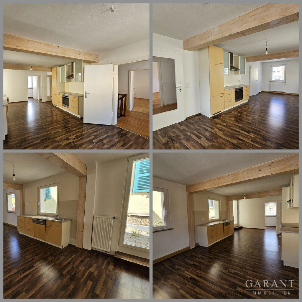 In die renovierte 5-Zimmer-Wohnung kann sofort eingezogen werden und bietet auf zwei Etagen Platz für die Familie mit Kindern bzw. Homeoffice-Räume. Im 1. Obergeschoss finden Sie eine großzügige Wohn-/Essküche, Dachterrasse, Wohn- und Schlafzimmer, Duschbad sowie Hauswirtschaftsraum. Im Dachgeschoss der Schlaftrakt mit 3 Räumen, Bad mit Eckbadewanne, Dusche, separate Toilette.
