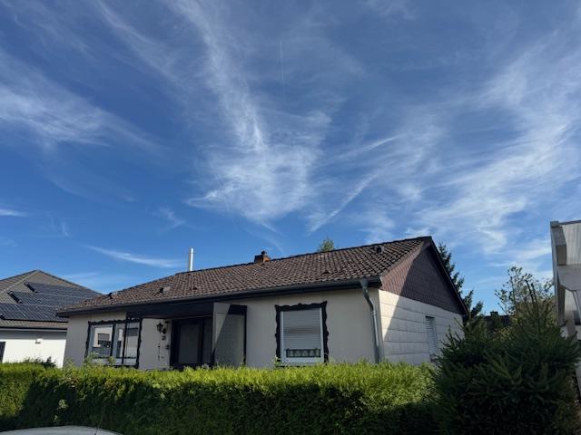 Es handelt sich bei dem Anwesen um ein Streif Fertighaus aus dem Jahr 1974, mit massiv gebautem Kellergeschoss. Im Innenausbau findet man schon viele modernen Akzente vor, allerdings gibt es weiteren Renovierungsbedarf. Heizung und Fenster wurden bereits einmal erneuert. Durch die Bungalowbauweise befinden sich alle Räume auf einer Etage, so dass man auch im Alter noch sehr gut hier wohnen kann. Die Terrasse wurde überdacht, verglast und liegt, wie der Garten auch, auf der Sonnenseite des großzügigen Grundstücks. Das Haus ist voll unterkellert. Eine Garage sowie ein Gartenhäuschen sind vorhanden.