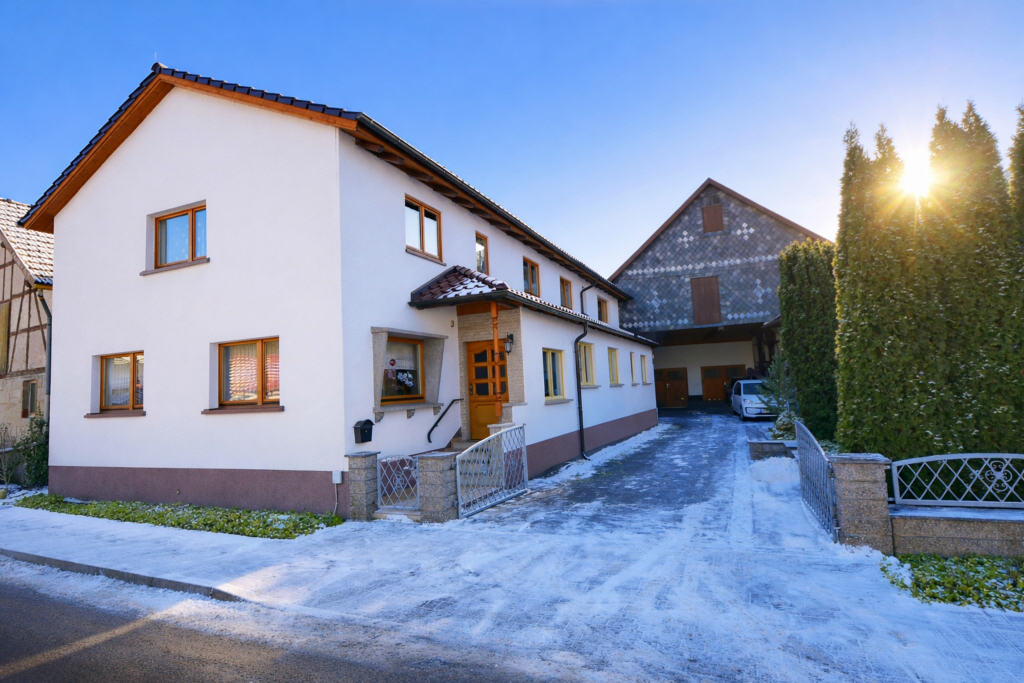 Dieses große Anwesen befindet sich lediglich 5 Fahrminuten von der Kurstadt Bad Rodach entfernt, in einem naturnahen Ortsteil von Heldburg. Der imposante Dreiseithof/Zweifamilienhaus wurde ca. 1900 erbaut und bietet im Erd- und Obergeschoss je eine 4-Zimmerwohnung mit 121 bzw. 130 m² Wohnfläche. Das dahinter gebaute Einfamilienhaus (Bj. 1900) wurde 2011 entkernt und aufgestockt und bietet weitere 4-Zimmer mit 144 m² Wfl.. Geheizt werden beide Häuser mit einer Stückholz-Zentralheizung (Bj. 1997 - Energiebedarfsausweis Zweifamilienhaus 157,7 kWh/(m²*a), Effizienzklasse E, Energiebedarfsauweis Einfamilienhaus 172,5 kWh/(m²*a), Effizienzklasse F). Zum Anwesen gehören 4 Garagen, div. Lagerflächen, sowie ein großer Garten mit Feldzugang. Ideal für 3 Parteien bzw. zur Vermietung! Irrtum und Zwischenverkauf vorbehalten. Alle Angaben stammen vom Eigentümer.