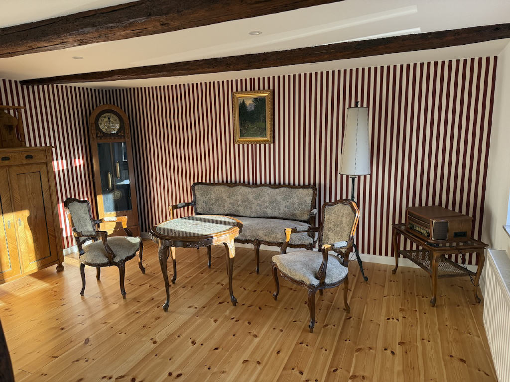 Das Hinterhaus wurde überwiegend ausgebaut und beherbergt einen separaten Gästebereich mit eigenem Duschbad sowie einer vorbereiteten Saunazone. Dadurch entsteht zusätzlicher Wohnraum, der sowohl Gästen als auch künftigen Nutzungsideen flexible Möglichkeiten eröffnet.