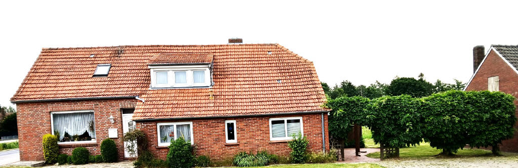 Sanierung des Fehnhauses oder Neubau auf den zwei Bauplätzen (1.612 qm) denkbar. Im Umfeld gibt es hier und da schon eine zweigeschossige Bauweise.