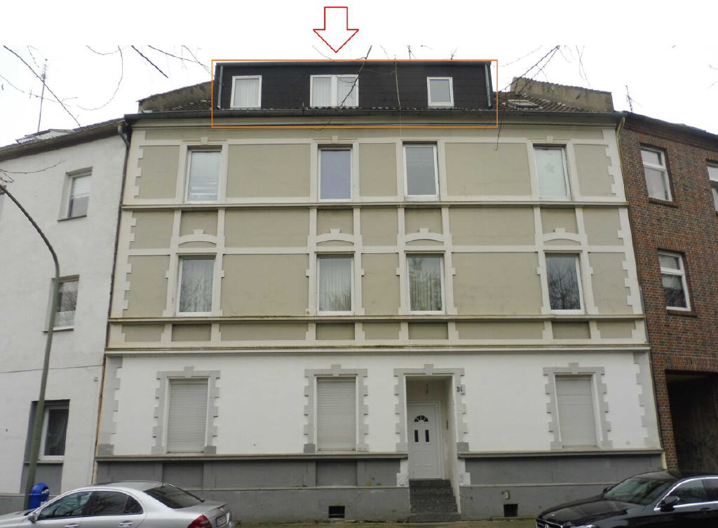 Es handelt sich um eine 2-Zimmer-DG-Wohnung in einem Mehrfamilienhaus mit insgesamt 5 Wohnungen und 3 Garagen im im Hofbereich. Zur Wohnung gehört ein Kellerraum.