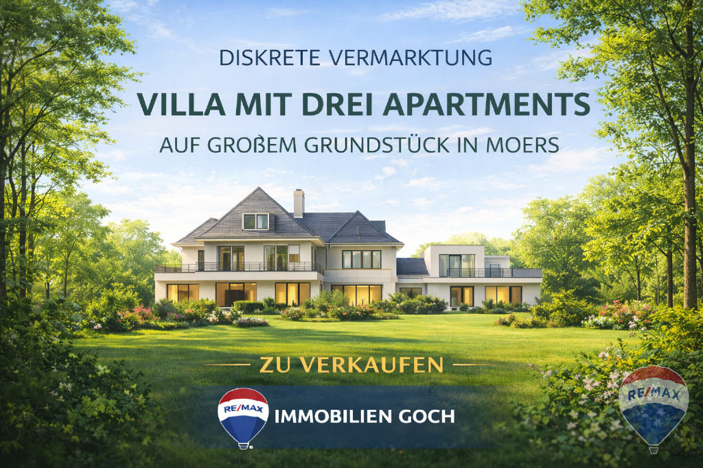 Diskrete Vermarktung – Repräsentatives Villenanwesen mit drei Apartments auf parkähnlichem Grundstück in begehrter Lage von Moers