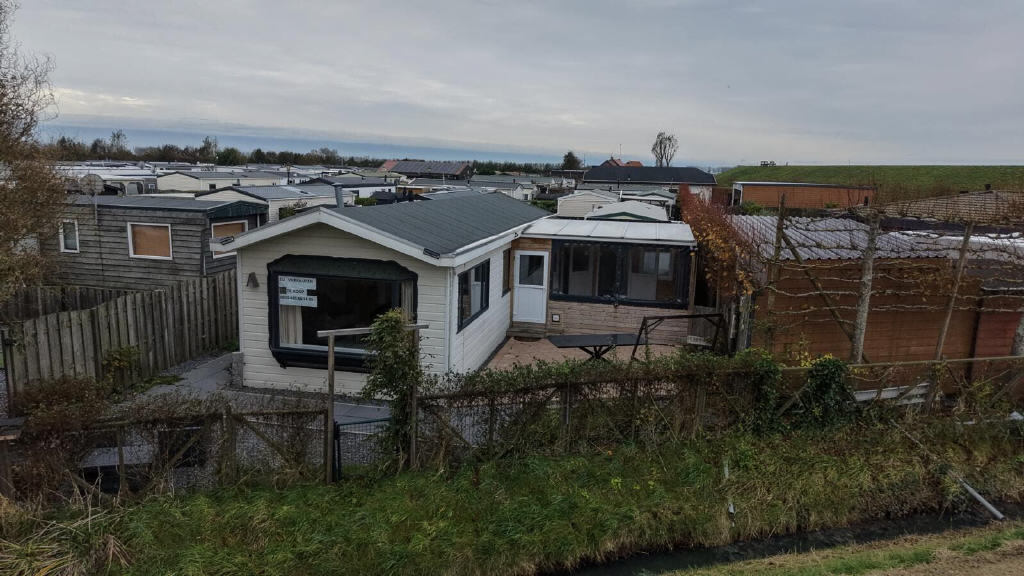 Geräumiges, ruhig gelegenes Chalet Donkervoort (14 x 4,20 m), mit angebauter Veranda. auf einem Feststellplatz in Stavenisse, einem Ortsteil von Tholen in Zeeland, Niederlande. Campingplatz 't Oude Dorp, platz 51. Ein schöner, gepflegter Campingplatz mit Schwimmbad und gemütlicher Kantine am Ufer der Oosterschelde. Der Preis beinhaltet die Liegeplatzgebühr für 2026. Möglichkeit, das ganze Jahr über zu bleiben.