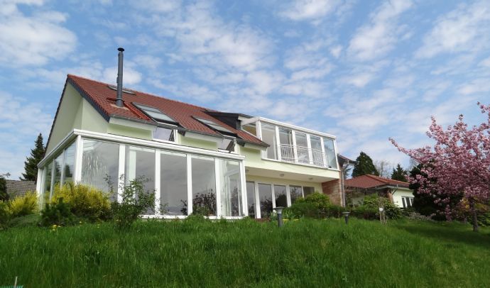 Spektakulär ist die eigene Parklandschaft des traumhaft schönen Anwesens in herrlicher Südlage mit unverbaubarem Fernblick über die Barockstadt Blieskastel und ins Bliestal.