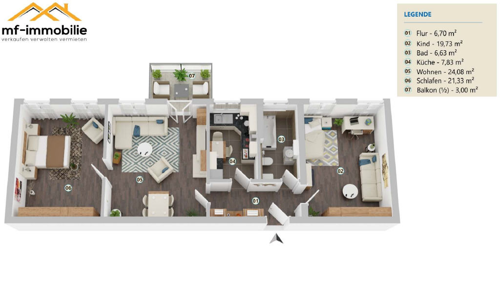 Ein Highlight der Wohnung ist der Balkon, der Ihnen die Möglichkeit bietet, den Wohnraum ins Freie zu erweitern und den Tag in entspannter Atmosphäre zu beginnen oder ausklingen zu lassen. Hier können Sie sowohl die Morgensonne als auch die Abenddämmerung genießen und einen persönlichen Rückzugsort im Freien gestalten. Der Balkon lädt dazu ein, frische Luft zu schnappen und dem Alltagsstress zu entfliehen.