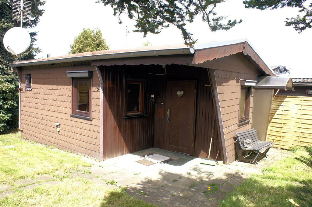 Raumaufteilung ideal für 1 bis 2 Personen: Schlafzimmer, Küche mit Wohnbereich, Bad mit Dusche und WC, überdachte Terrasse. Pflegeleichtes, uneinsehbares Grundstück mit PKW-Stellplatz.