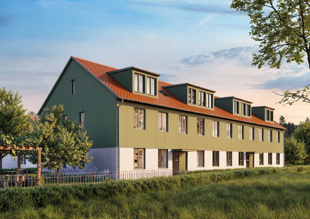 Die drei Wohnungen im Erdgeschoss profitieren von einem direkten Zugang zum Garten. Zudem wird im Vorgarten ein Kinderspielplatz mit dem Gartenhaus „Frieda“ sowie ein Sandkasten mit Sitzgelegenheiten und Bänken entstehen – ideal für Familien mit Kindern.