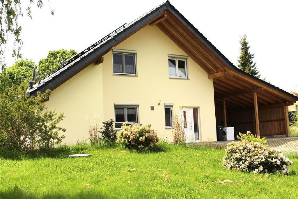 Zum Verkauf steht ein äußerst gepflegtes, neuwertiges Einfamilienhaus, absolut ruhig gelegen am südlichen Ortsrand. Das 1,5- geschossige Haus wurde 2014 als Neubau errichtet und entstand in massiver Bauweise, ohne Keller auf Bodenplatte, mit einem Holzdachstuhl mit Ziegeleindeckung auf einem rund 1.400 m² großen Grundstück in leichter Hanglage.