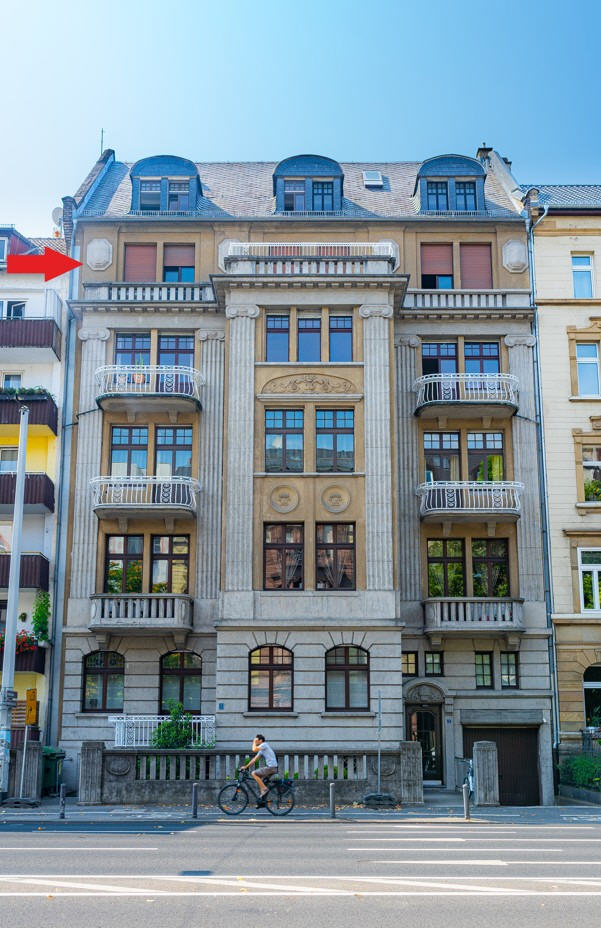 Diese außergewöhnliche Eigentumswohnung befindet sich im vierten Obergeschoss eines denkmalgeschützten Mehrfamilienhauses aus dem Jahr 1913 – inmitten der begehrten Mainzer Neustadt. Das fünfgeschossige Gebäude im neoklassizistischen Stil ist offiziell als Kulturdenkmal eingetragen und besticht durch seine repräsentative Fassade sowie zahlreiche original erhaltene Ausstattungsdetails.