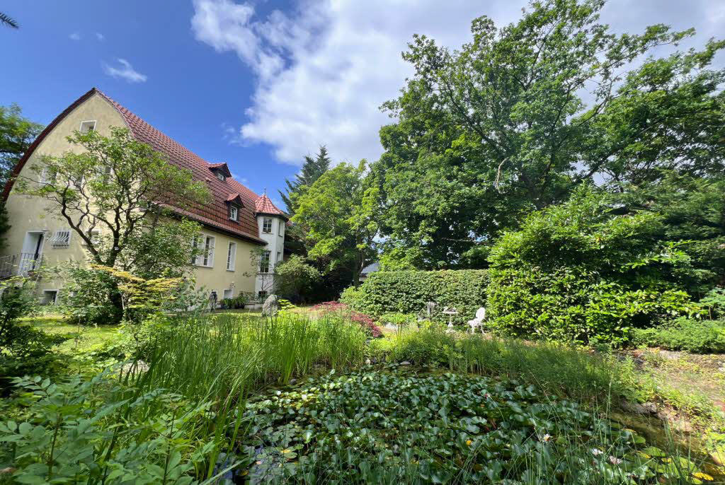 Das 2.178 qm große Grundstück beinhaltet neben der Parkanlage und dem Teich, eine Doppel-Garage sowie 3 PKW-Stellplätze vor dem Haus.