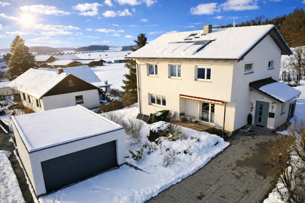 Dieses großzügige Einfamilienhaus wurde 1964 in einem beliebten Ortsteil von Ebersdorf bei Coburg erbaut. Trotz der idyllischen Wohnlage am Feldrand erreichen Sie die A73 sowie diverse Einkaufsmöglichkeiten in kürzester Zeit. Sie wohnen auf großzügigen 160 m² Wohnfläche. Herzstück des Hauses ist der einladende Wohn- und Essbereich mit direktem Zugang zum naturnahen Garten mit Pool. Das Haus wurde 2015 umfassend kernsaniert und aufgestockt. Inklusive neuem Dachstuhl mit moderner Dämmung sowie Vollwärmeschutz. Der Eigentümer hat großen Wert auf Qualität gelegt und zahlreiche hochwertige Extras integriert, darunter stilvolle Deckenbeleuchtung, eine Klimaanlage und weitere Ausstattungsdetails. Ein weiteres Highlight ist die massive Doppelgarage mit integrierter Werkstatt, die erst 2025 fertiggestellt wurde. Ein echtes Plus für Handwerker, Bastler oder Autoliebhaber. Beheizt wird das Haus über eine effiziente Öl-Zentralheizung (Baujahr 2016), unterstützt durch Solarthermie. Der Energieverbrauch liegt bei nur 78,6 kWh/(m²·a), Energieeffizienzklasse C (Energieverbrauchsausweis). Das Gebäude ist zudem voll unterkellert (inkl. Partykeller!). Rundum eine tolle und günstigere Alternative zum Neubau!
