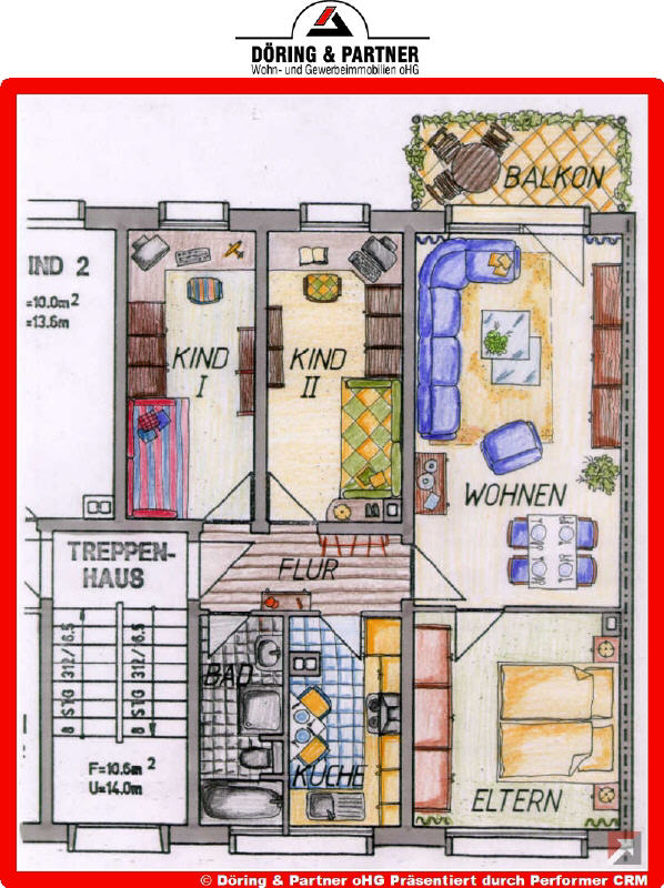 - Die Wohn-, Schlaf- und Kinderzimmer und der Flur sind oder werden mit Laminatboden ausgestattet.