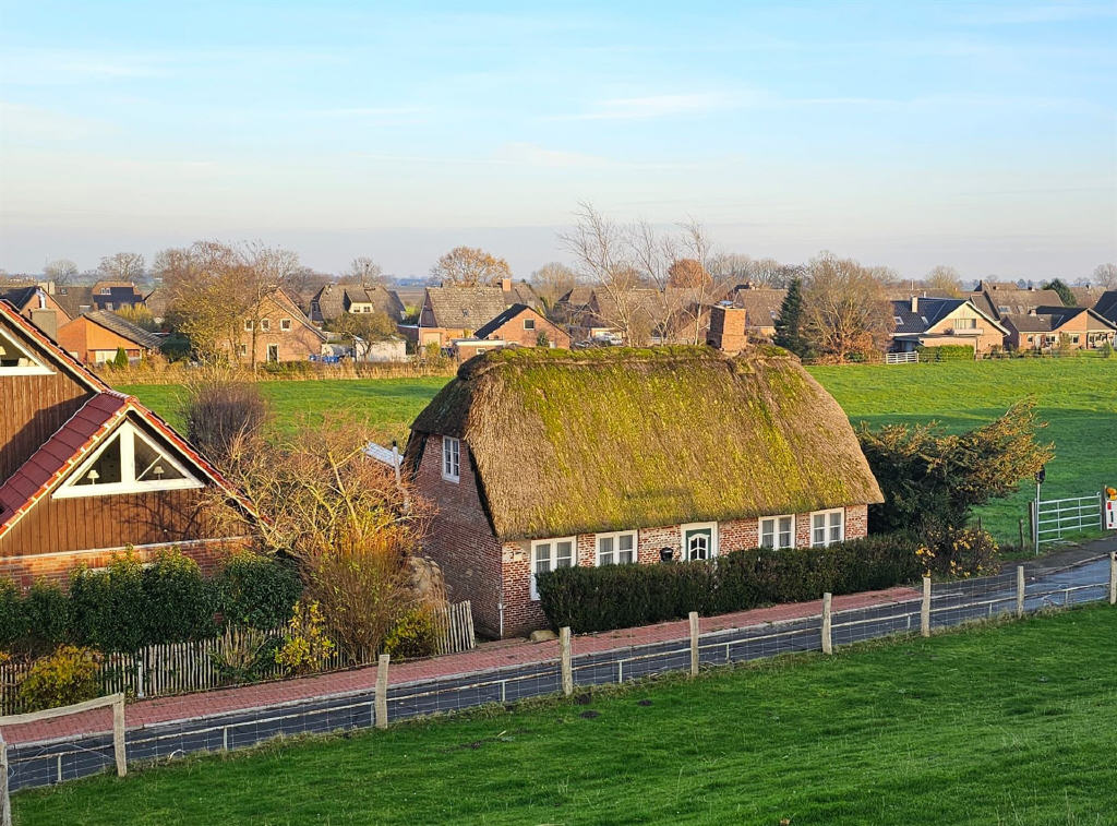 Manchmal begegnet einem ein Ort, der sich anfühlt wie der Anfang einer Geschichte. Diese Reetdach-Kate am Deich ist so einer. Ein Haus, das wirkt, als würde es schon seit Jahren geduldig auf jemanden warten, der ihm wieder Leben einhaucht. Vielleicht auf Menschen, die sich nach Ruhe sehnen, weit weg vom schnellen Rhythmus der Welt oder eine kleine Familie, die einen Neuanfang wagt. Das Haus selbst ist bereit für eine Verwandlung: Bodenbeläge, Küche und Bad wünschen sich eine moderne Auffrischung und viele der Leichtbauwände lassen sich verändern, um dem Grundriss eine neue Handschrift zu verleihen. Es ist ein Ort, der Ihnen nicht Grenzen vorgibt, sondern Möglichkeiten eröffnet. Im Erdgeschoss finden sich derzeit ein Wohnzimmer, ein Schlafzimmer, ein Wannenbad und der Küchenraum, der nach Entfernung der früheren Einbauten bereit ist für eine kreative Neugestaltung. Das Dachgeschoss - zu einem großen Teil bereits wohnlich ausgebaut - lädt dazu ein, eigene Ideen weiterzuspinnen: Arbeitsraum, gemütliches Studio, Rückzugsort zum Lesen - hier darf Ihre Fantasie wachsen. Hinter dem Haus liegt ein Garten, der darauf wartet, wieder entdeckt zu werden. Mit ein wenig Hingabe könnte er zu einem blühenden Rückzugsort werden, mit Platz für ein kleines Gemüsebeet und einer schönen Terrasse voller Kräuterkübel von denen der Duft durch offene Fenster zieht. Das kleine Nebengebäude bietet sich als praktischer Stauraum an - ein unscheinbarer, aber wertvoller Begleiter im Alltag. Diese Reetdach-Kate ist kein gewöhnliches Zuhause. Sie ist ein Herzensprojekt - perfekt für Menschen, die Freude daran haben, etwas Eigenes zu schaffen. Und das an einem Ort, an dem andere Urlaub machen wollen.
