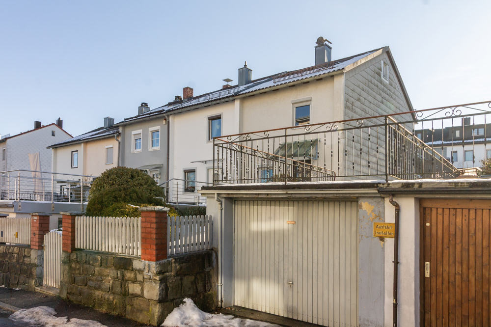 Haus für Ehepaar: Reiheneckhaus mit 3 Zimmer – Dachboden nicht ausbaufähig! Im Erdgeschoss: Flur, 7 m² Küche, 18 m² Wohnzimmer, 13 m² Wintergarten. Im OG: 13 m² Schlafzimmer, 12 m² Kinderzimmer, 4 m² Bad/WC, Flur. Das Haus ist unterkellert. Ein Dachboden als Lagerfläche ist vorhanden. Es wurden verschiedene Erneuerungen vorgenommen: fast ausnahmslos Kunststofffenster mit Isolierverglasung, Gas ZH Bj. 1992. Das Bad im OG wurde ca. in den 1990er Jahren erneuert.
