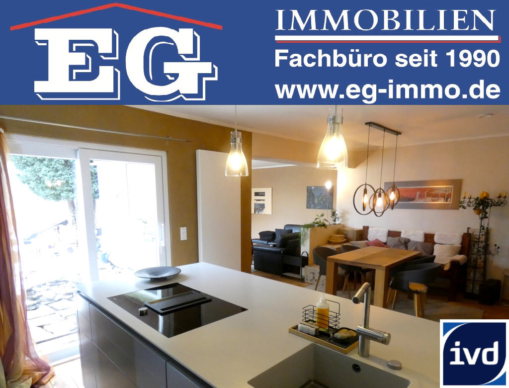 Begrüßt werden Sie in diesem Haus im Erdgeschoss durch eine geräumige, moderne Küche mit Kochinsel und Platz zum Essen, Zugang zur Terrasse und hochwertigen E-Geräten, wie Induktionskochfeld mit Downdraft-Dunstabzug. Fließend geht es dann über in das gemütliche Esszimmer und angrenzend in das lichtdurchflutete Wohnzimmer mit direktem Zugang zur Terrasse mit Ausblick in den Garten. Über die gelungen aufgearbeitete Massivholztreppe gelangen Sie in den oberen Bereich des Hauses. Die beiden Zimmer werden momentan als Schlafraum mit Ankleideraum genutzt. Ergänzt wird diese Etage durch Ihre persönliche Badeoase. Das moderne Duschbad mit geräucherten Eichendielen lässt hier keine Wünsche offen. Das Haupthaus ist unterkellert und bietet eine Außentreppe zu den zwei bis drei PKW-Stellplätzen, die sich direkt am Haus befinden. Der Garten ist individuell als gestaltet und kann als pflegeleichtes Gartenparadies bezeichnet werden. Die Außenfassade wartet auf Ihre eigenen Gestaltungsideen.