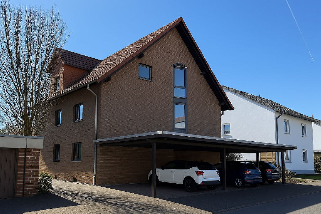 Ein eigener Kellerraum gehört ebenfalls zur Wohnung und bietet wertvollen zusätzlichen Stauraum. Ein Carport direkt am Haus sorgt für bequemes und witterungsgeschütztes Parken.