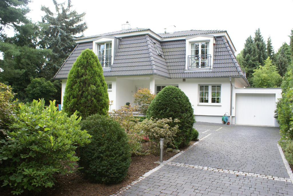 Die Villa liegt zurückgebaut und angrenzend an den wunderschön gepflegten vorderen Gartenbereich mit Hofeinfahrt. Rechtsseitig angebaut befindet sich eine Garage mit zusätzlichem Abstellraum. Das Haus ist durch eine aufwendige Alarmanlage rundum gesichert. Der repräsentative Eingangsbereich ist mit hellem Feinsteinzeug belegt und führt in die angrenzenden Zimmer des Erdgeschosses. Die neue, moderne Küche ausgestattet mit allen nur erdenklichen Elektrogeräten wie auch z.B. Steamer, Wärmeschublade und vielen, vielen weiteren Extras bietet einfach jeglichen Komfort und geht in das großzügige Wohnzimmer mit geschmackvollem Kamin sowie dem hellen Esszimmer über. Von hier bietet sich durch die große, bodentiefe Fensterfront ein herrlicher Blick in den schönen Garten. Zusätzlich befinden sich auf dieser Etage noch zwei große Schlafzimmer, ein komfortables Bad in Stilrichtung „weiß in weiß“ und ein Abstellraum. Der eingewachsene Garten mit seinem wunderschönen abgestimmten Baum-, Busch- und Rosenbestand und die große Terrasse laden zum entspannten Verweilen ein. Über die weiße Holztreppe mit eingearbeitetem Feinsteinzeug gelangt man in das erste Obergeschoss. Hier befinden sich drei sehr großzügig bemessene helle Schlafzimmer (das wirklich sehenswert gestaltete Elternschlafzimmer mit direkt angrenzender herrlicher Dachterrasse) sowie eine wohnlich nutzbare Galerie. Komplettiert wird diese Etage durch ein großes erstklassig ausgestattetes Badezimmer mit allem erdenklichen Komfort. Im Untergeschoss befindet sich eine neue große Sauna mit Relaxbereich.