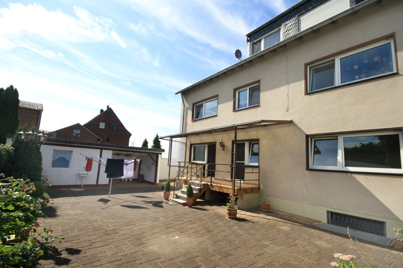 Das Dreifamilienhaus zeigt sich in gepflegtem Gesamtzustand. Die zu vermietende Wohnung befindet sich im Erdgeschoss. Sie verfügt über rund 103 m² Wohnfläche, verteilt auf 3 Zimmer, Küche, Bad und Gäste-WC.