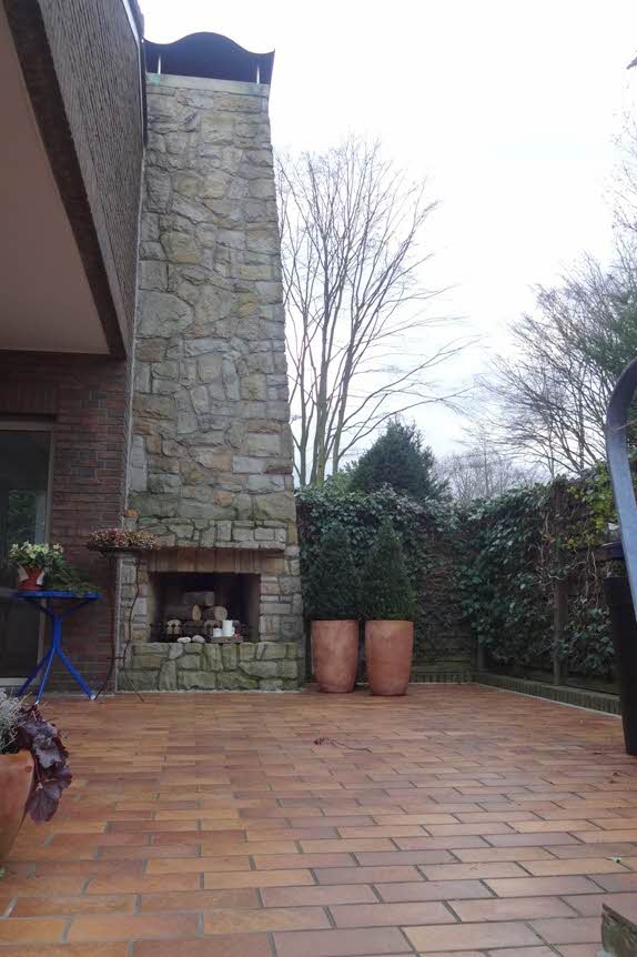 Über die großflächige Terrasse die über einen schönen Außenkamin verfügt gelangt man in den gepflegten und schön angelegten Garten.