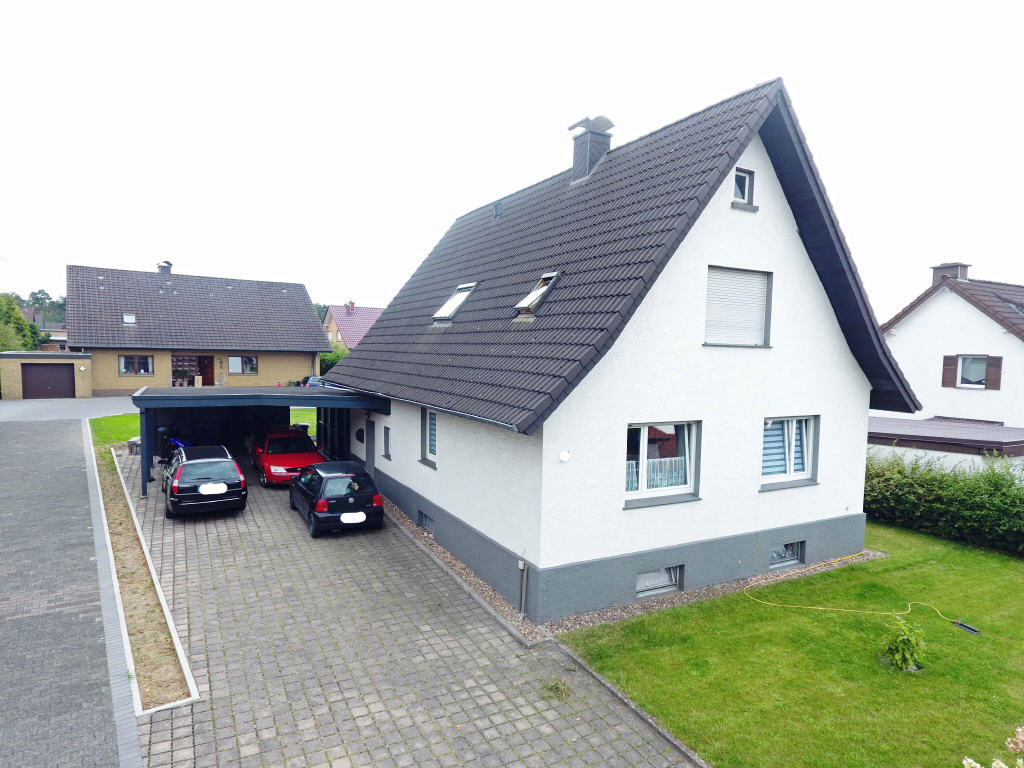 Diese attraktive Immobilie liegt in fußläufiger Entfernung zum Zentrum der Innenstadt. Hier wird Ihnen eine vollständige Infrastruktur geboten. Enkaufsmöglichkeiten, Ärzte, Rathaus etc. liegen in diesem Einzugsbereich. Auch die Verkehrsanbindung ist perfekt. Das Gebäude wurde in den 1930er Jahren errichtet. Das Objekt verfügt über eine Eingangsdiele im Erdgeschoss mit Badezimmer, Hauswirtschaftsraum und einer vorgelagerten Terrasse. Von dieser Ebene gelangt über eine halbe Treppe in den Wohnbereich mit Essküche und großem Wohnzimmer. Über die nächste Treppe erreicht man das Dachgeschoss des Eingangsbereiches mit zwei Zimmer. Im Dachgeschoss über dem Wohnbereich befinden sich zwei Schlafzimmer und ein Duschbad. 2017 wurde ein großer Carport errichtet. In diesem Zuge wurde auch die Entwässerung auf der Ost- und Südseite erneuert. Die Kunststofffenster stammen aus den 1980 Jahren. Die Hauseingangstür wurde auch schon erneuert. Im Innenbereich kann man sicherlich noch einiges tun, um sich rund herum wohlzufühlen. Die Bausubstanz bietet eine solide Basis für entsprechende Veränderungen. Das Gebäude ist teilunterkellert und bietet dort weitere Abstellmöglichkeiten. Wir haben Ihr Interesse geweckt? Dann nehmen Sie doch bitte Kontakt mit uns auf und besuchen uns auch auf unserer Homepage: gross-und-partner.de