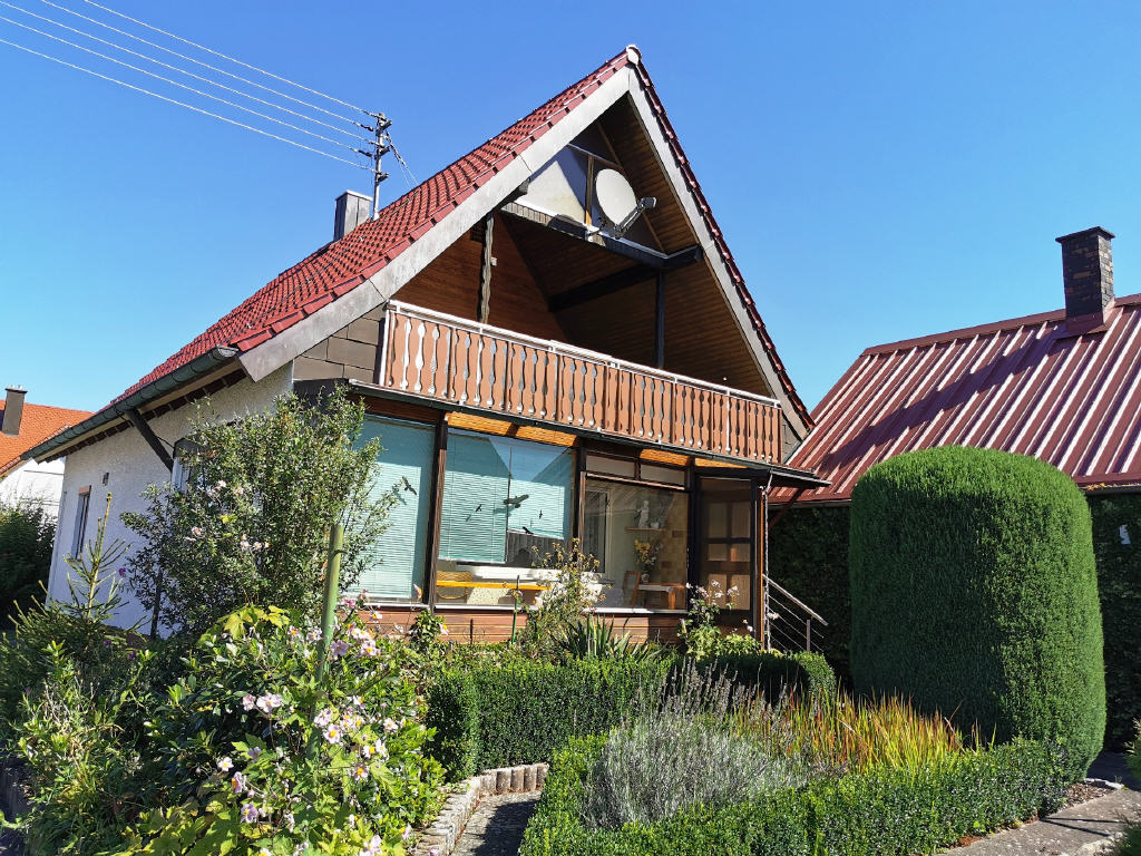 Dieses sehr ruhige und mit großer Sorgfalt instand gehaltene EFH wurde 1955 in Massivbauweise errichtet und 1979 angebaut. Durch den Anbau (ca. 32 m² Wfl.) entstand auf der Südseite ein größeres Wohnzimmer mit darüber liegender Loggia. Im Haupthaus verteilen sich ca. 100 m² Wohnfläche auf zwei Stockwerke. Das EG ist mit einem ca. 30 m³ großen Wohnzimmer, Küche, Badezimmer und Gäste WC ausgestattet. Vom Wohnzimmer aus gelangen Sie über einen kleinen Wintergarten in den sehr liebevoll angelegten Garten mit Gewächshaus. Im Obergeschoss gelangen Sie über eine geräumige Diele in zwei Schlafzimmer. Die ca. 20 m² große Loggia mit Südausrichtung ist über das größere Zimmer begehbar. Selbst bei schlechtem Wetter können Sie hier windgeschützt an der frischen Luft verweilen. Bei Bedarf ist hier mit überschaubarem Aufwand ein weiteres Zimmer möglich.