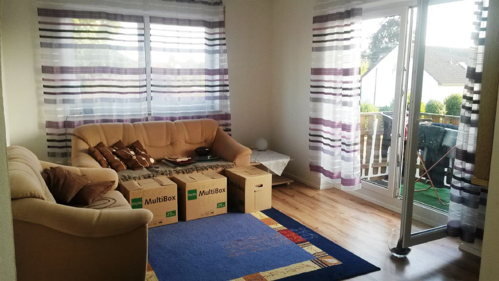 In einem 6 Parteienhaus befindet sich die Wohnung im 1. OG. Von der zentralen Essdiele aus sind alle Zimmer erreichbar. Über das Wohnzimmer ist der überdachte Südwestbalkon erreichbar, auf dem sich bis spät abends die Sonne genießen lässt. Gleich daneben ist die Küche (EBK kann vom derzeitigen Mieter abgelöst werden). Wohnzimmer und Küche sind beide offen und durch Rundbogenelemente begehbar. 3 Schlafzimmer, das Bad mit Dusche/Wanne und Fenster komplettieren die 76m ² große Wohnung. Alle Räume (außer Küche u. Bad) sind mit Böden aus Laminat ausgestattet. Wände und Decken sind verputzt bzw. geweißelt.