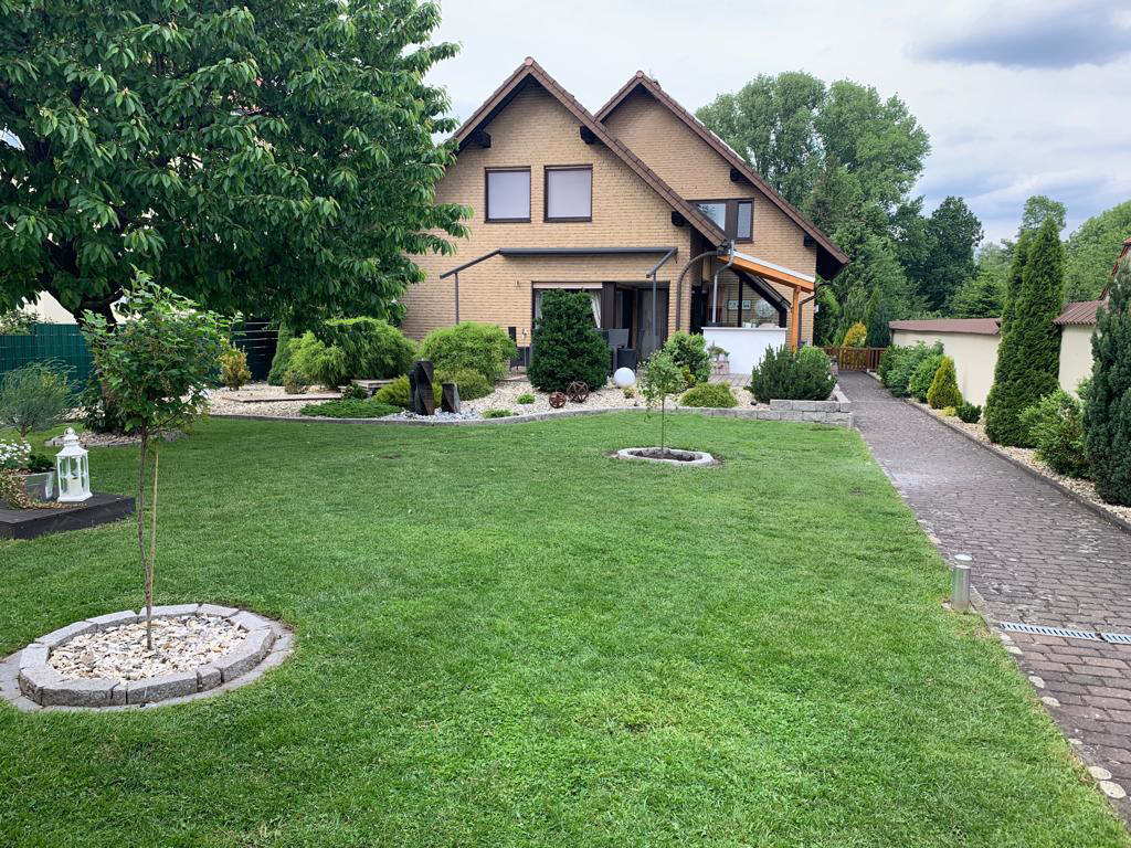 Es handelt sich um ein vollunterkellertes, hochwertiges Einfamilienhaus mit 2 Wintergärten, Wellnessbereich und Schwimmbad, erbaut 1989 auf einem 2.565 m² großen Grundstück. Davon sind ca. 1200 m² als Bauland eingestuft. Auf dem vorderen Teil zur Straße befindet sich eine Gewerbehalle mit einer Garage.