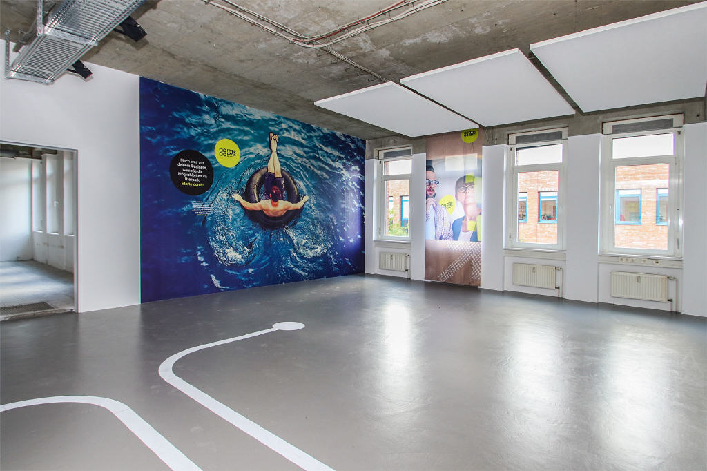 Moderne, getrennte WC-Bereiche hygenisch vom Treppenhaus zu begehen. Helle, transparente Glastüren öffnen sich in Ihre Räumlichkeiten. Überall herrscht Tranparenz und Offenheit vor. Die Grundrissgestaltung ist flexibel möglich - ob Großraumbüro, Meeting- und Konferenzräume oder Einzel- und Doppelbüros für ungestörtes Arbeiten - hier können Sie frei wählen.