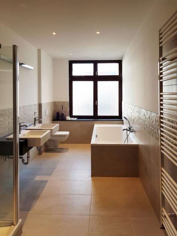 Drei der Wohnräume verfügen über leichte Dachschrägen, welche den Räumen einen charmanten, gemütlichen Charakter verleihen. Das moderne Badezimmer ist mit einer Dusche, einer Badewanne und einem Doppelwaschbecken ausgestattet, was für zusätzlichen Komfort und ausreichend Platz sorgt. Über die Küche erfolgt der Zugang zu einem sonnigen Süd-Balkon.