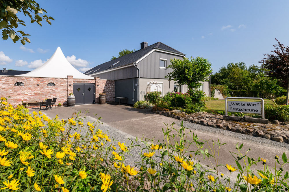Kennen Sie den Ausdruck „sich ins gemachte Nest legen“? Bei dieser besonderen Event-Location trifft das sicherlich zu. Denn nicht nur die Räumlichkeiten sind quasi sofort nutzbar, auch die bisherige positive Auftragslage mit zufriedenen Bestandskunden und klaren Zukunftsaussichten wird gleich mitübernommen. Außerdem besteht die Möglichkeit, das vorhandene und qualitativ gute Gastro-Inventar gegen einen Aufpreis zu übernehmen. Das Mehrfamilienhaus mit großer Festscheune, Café, 4 Wohnungen, zahlreichen Anbauten und einem großen Außenbereich mit Parkplätzen, Grünflächen und Teichen liegt verkehrstechnisch gut angebunden im Norden Nordfrieslands, ganz in der Nähe zu Niebüll und Dänemark. Ein Objekt mit viel Potenzial für jeden, der sich in der Event-Branche erfolgreich selbstständig machen möchte. Aber auch zur rein privaten Nutzung ist dieses Anwesen hervorragend geeignet und bietet sehr viel Raum für eigene kreative Vorstellungen und Pläne.