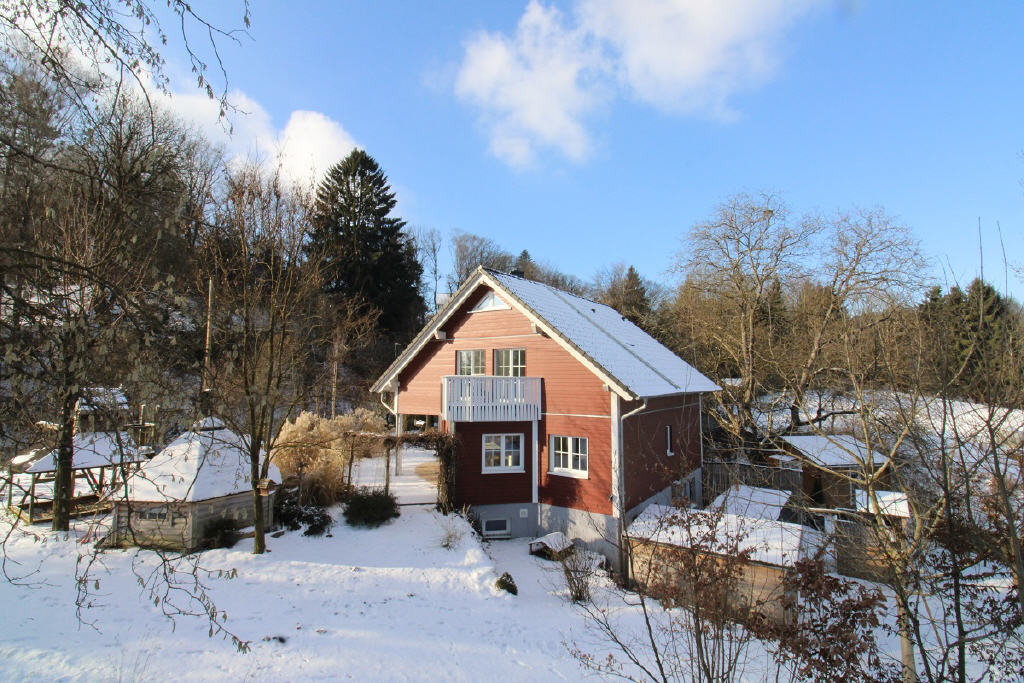 Dieses besondere Niedrigenergie-Fertighaus im Schwedenstil besticht nicht nur mit seinen vielen Extras, sondern auch mit seiner traumhaften Lage auf dem Berg.