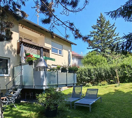 Im Hochparterre befindet sich eine großzügige 4,5-Zimmer-Wohnung mit einem einladenden Wohn- und Essbereich samt Kaminofen, einer modernen Einbauküche, einem Elternschlafzimmer sowie zwei Kinderzimmern. Ein modernes Duschbad, ein separates WC, ein Abstellraum und eine Garderobe ergänzen das Raumangebot. Die angeschlossene Terrasse mit Treppe in den Garten bietet zusätzlichen Wohnkomfort.