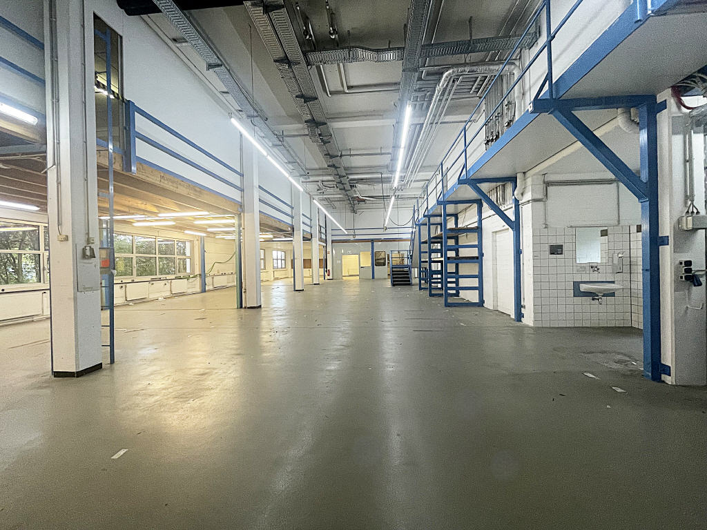Ergänzt wird die Ausstattung durch separate, modernisierte Sanitäranlagen - jeweils für Damen und Herren - die im Jahr 2021 umfassend renoviert wurden. Direkt angrenzend an die Halle befindet sich ein zusätzlicher Raum, der sich ideal als Pausenraum oder Sozialfläche eignet. Darüber hinaus stehen innerhalb der Halle drei abgetrennte Bereiche zur Verfügung, die flexibel als Lagerfläche oder Hallenbüros genutzt werden können.