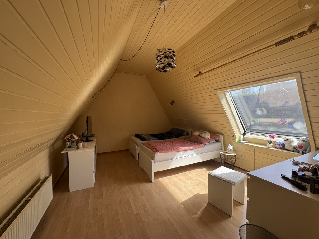 Die Räume verteilen sich auf ein geräumiges Wohnzimmer, drei weitere Zimmer, eine Küche, eine Diele sowie ein Badezimmer und ein separates Gäste-WC. Eine Dachterrasse bietet zusätzlichen Freiraum und lädt zum Entspannen ein.
