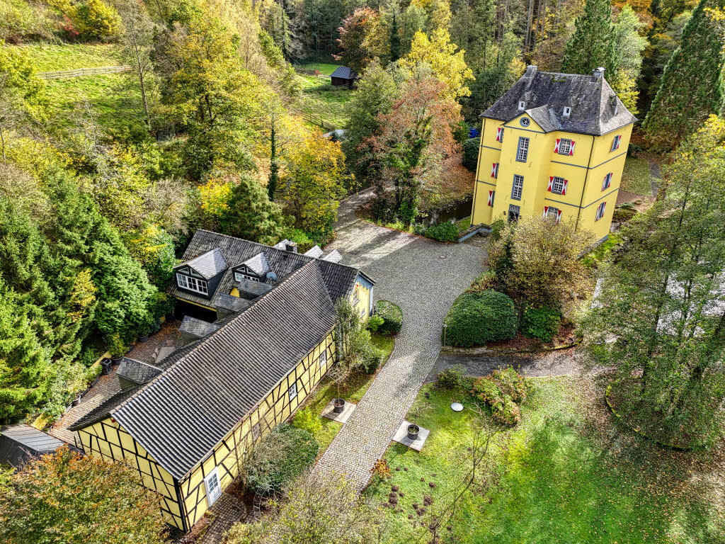 Restaurierte Wasserburg Burg Welterode von 1249 in Eitorf im Rhein-Sieg-Kreis mit Vorburg und intaktem Wassergraben. Burg und Vorburg wurden ca. 2011 stilvoll saniert. Die Burg bietet ca. 335 m Wohnfläche verteilt auf 12 teilweise sehr große Räume und einen Wellnessbereich mit Pool im Untergeschoss. Die Vorburg bietet weitere ca. 240 m Wohnfläche verteilt auf 3 Wohneinheiten sowie Nebenräume. Die gesamte Wohnfläche beträgt somit ca. 575 m². Das ca. 32.000 m² große Grundstück ist parkartig angelegt und beherbergt gegenwärtig Pfauen, Gänse und ein Känguru. Auch Pferdehaltung ist möglich. Bei Verkauf vollständig freiwerdend. Kaufpreis € 1.875.000.