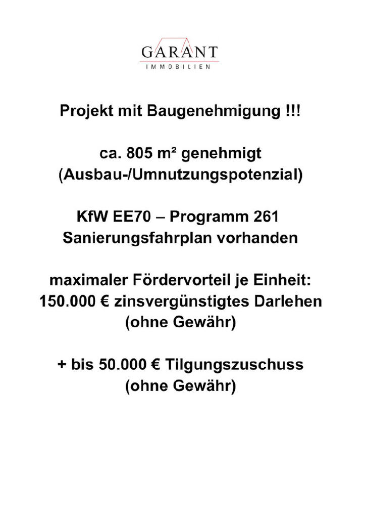 * Baugenehmigung für Umnutzung & Sanierung liegt vor